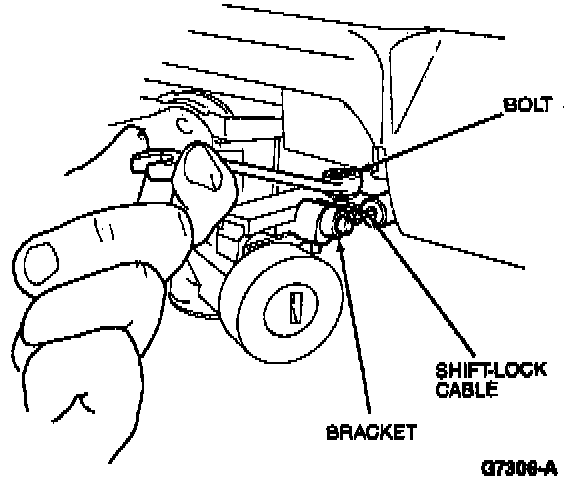 4. Remove the shift-lock cable mounting bracket bolt and position. the bracket and cable aside.