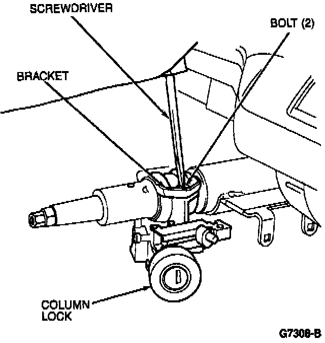 1. Position the steering column lock and mounting bracket and install two new bolts, tightening them only enough to hold the column lock in position.