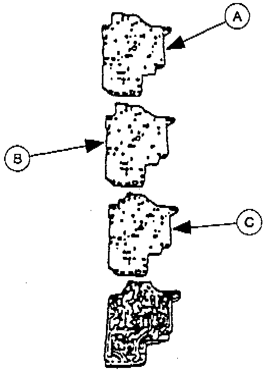 7. Install the new (A) main gasket, (B) separator plate, and the new (C) premain gasket.