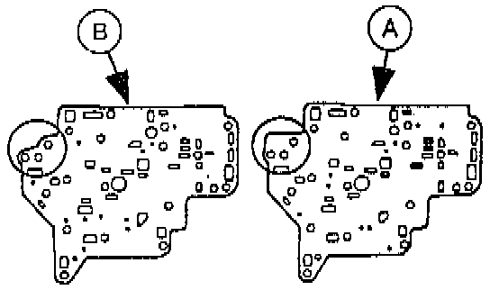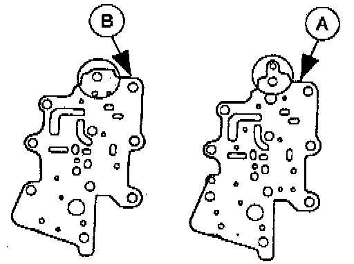 5. Install the (A) rubber check balls and the (B) oil strainers into their proper positions in the premain control valve body.