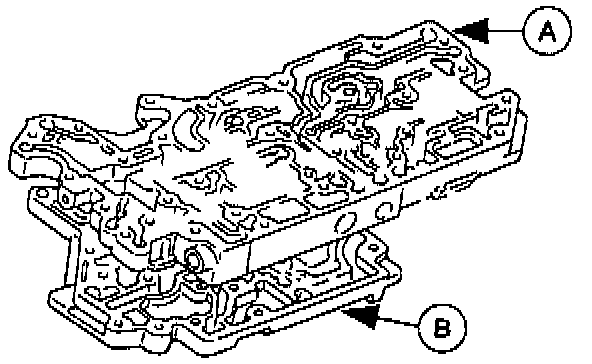 4. Install the (A) premain control valve body onto the (B) lower valve body.