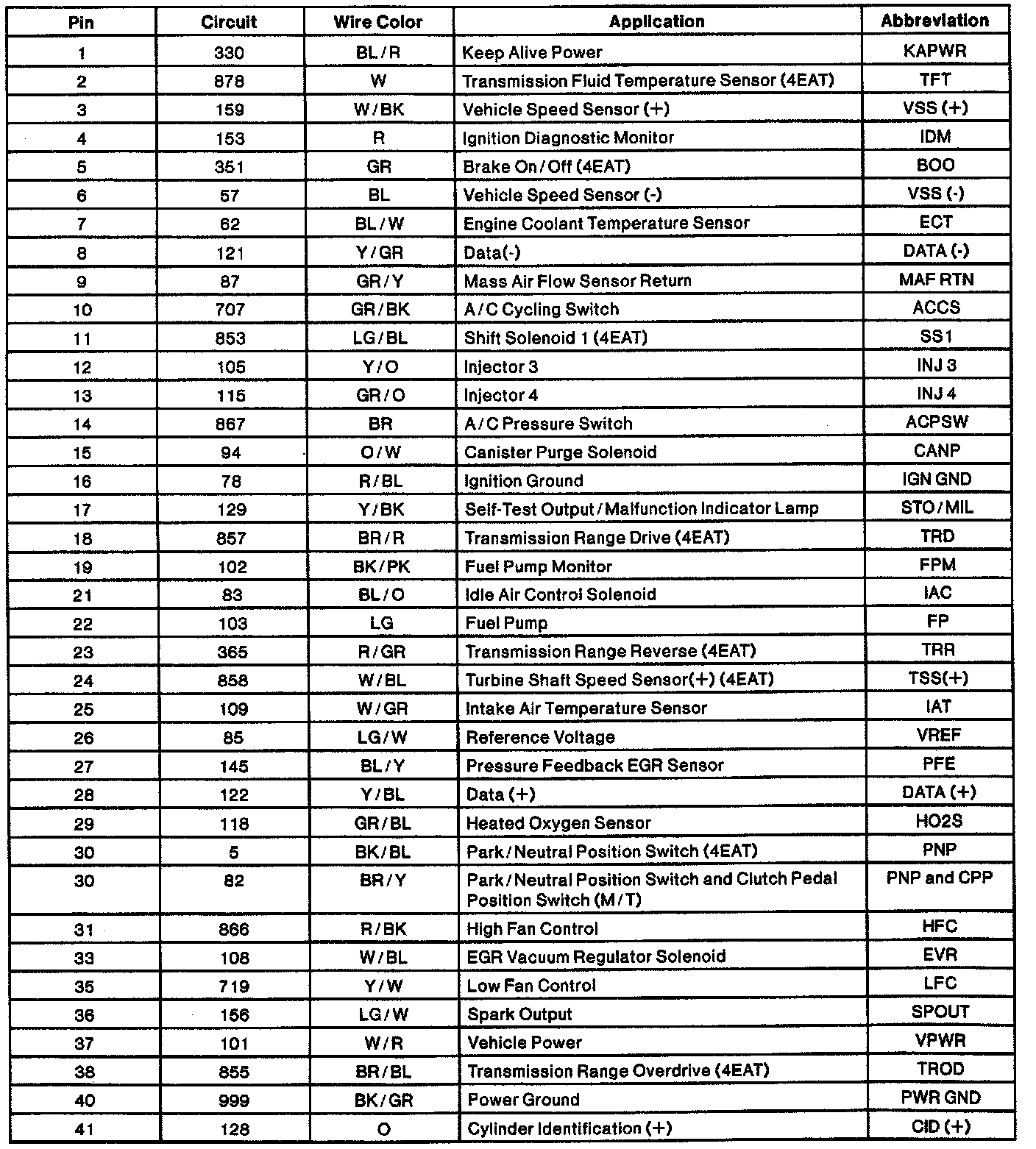 PCM Pin Usage: