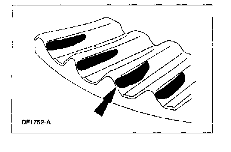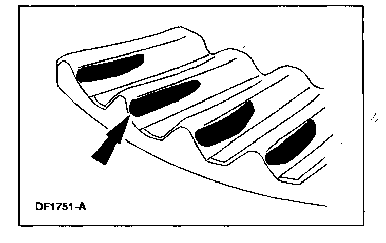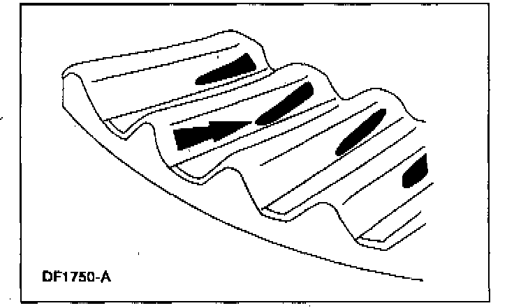 6. Apply a marking compound to a third of the gear teeth on the differential ring gear. Rotate the differential ring gear several complete turns in both directions until a good, clear tooth pattern is obtained. Inspect the contact patterns on the ring gear teeth.
