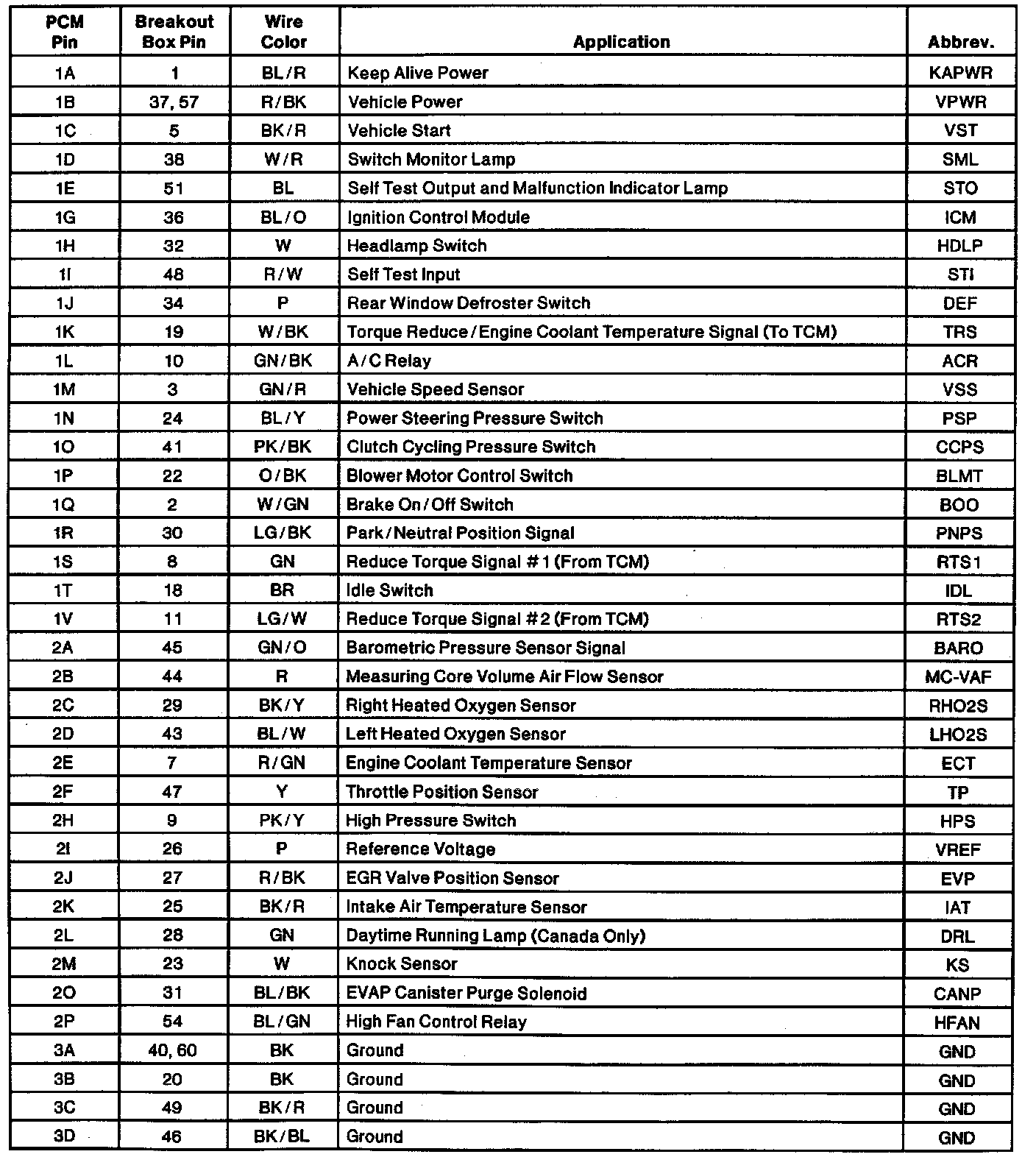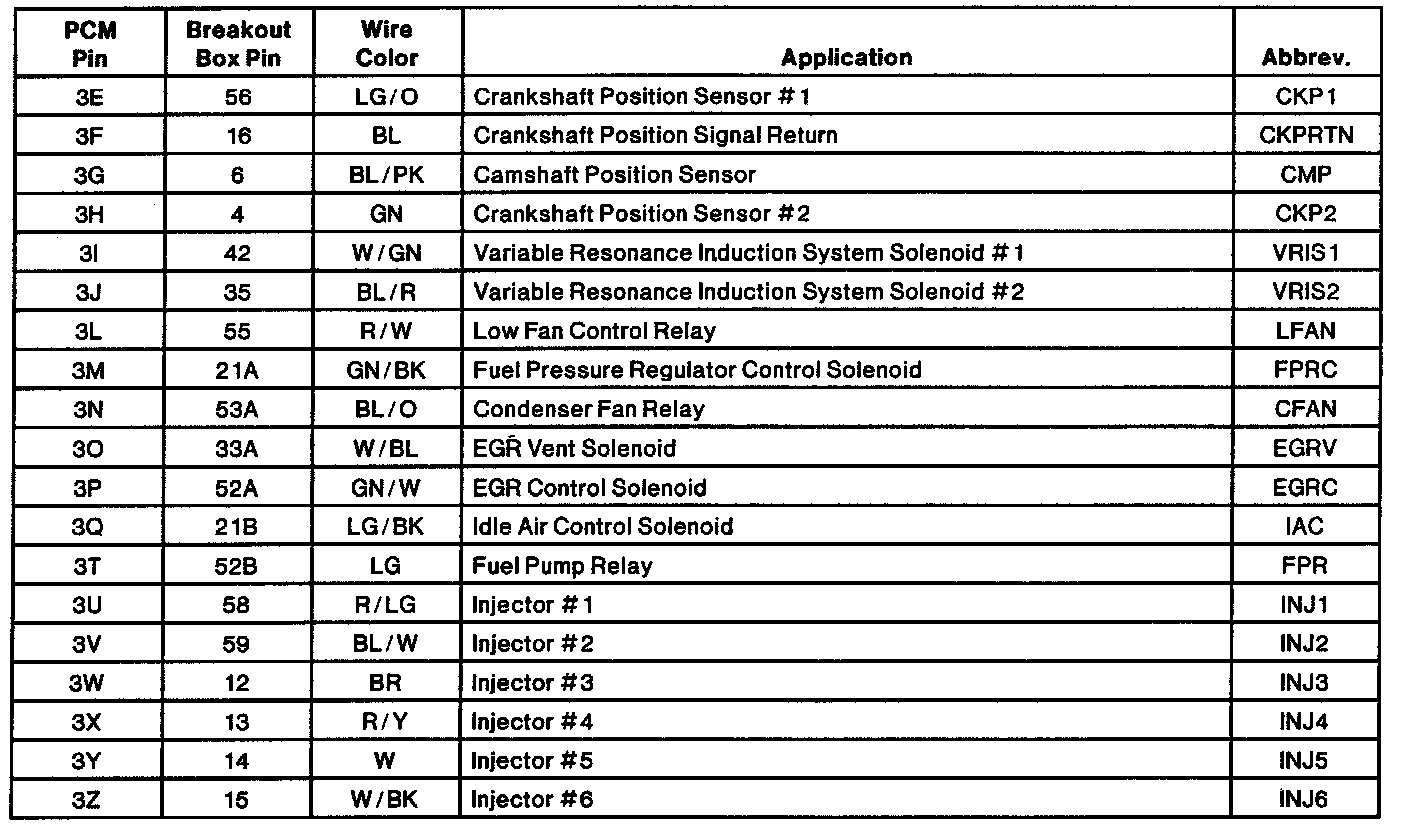Engine Electrical Connector Pin Usage: