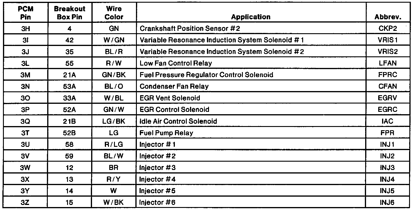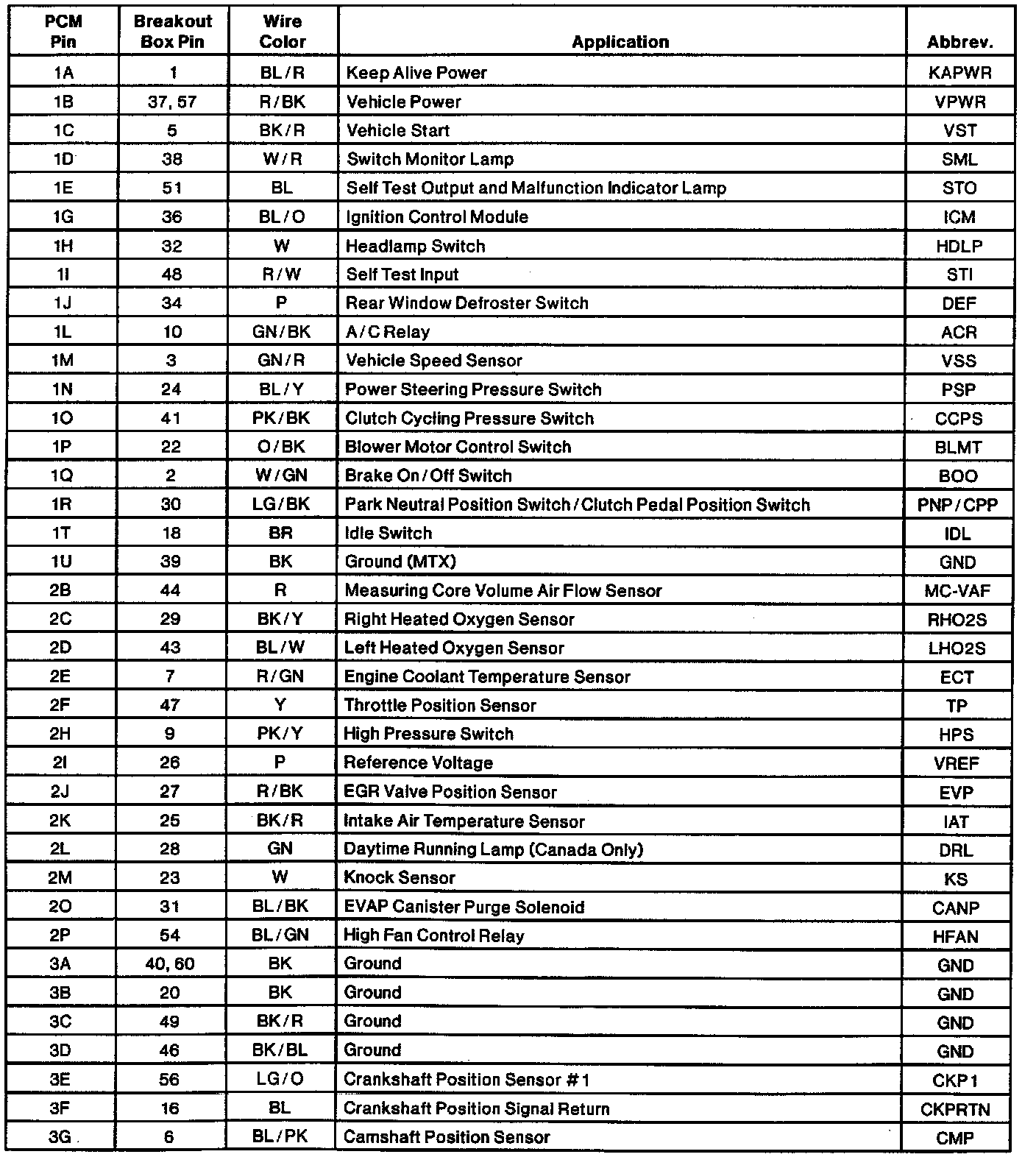 Engine Electrical Connector Pin Usage: