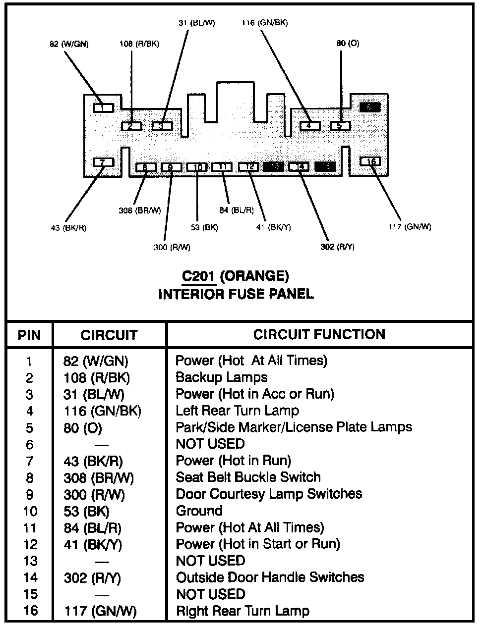 Interior Fuse Panel (C201):
