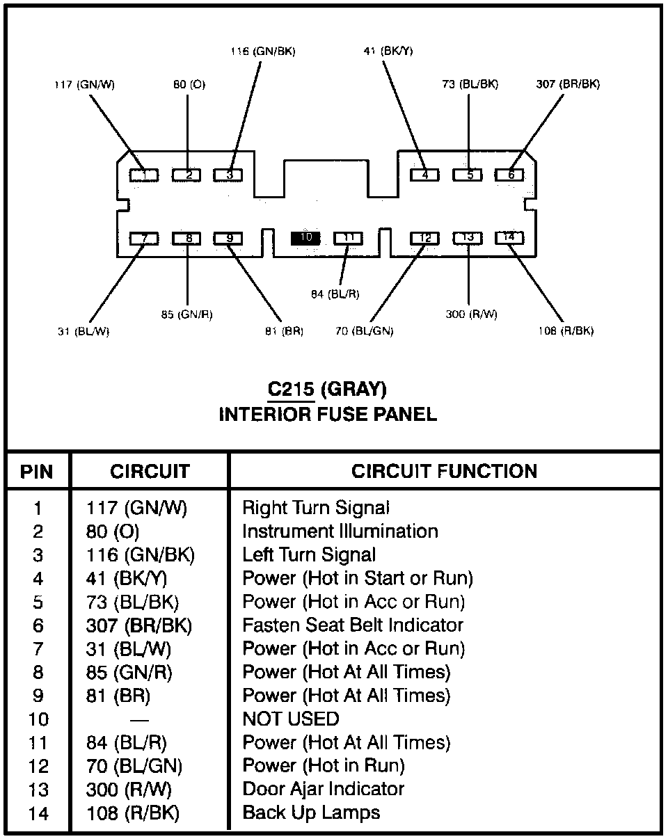 Interior Fuse Panel (C215):