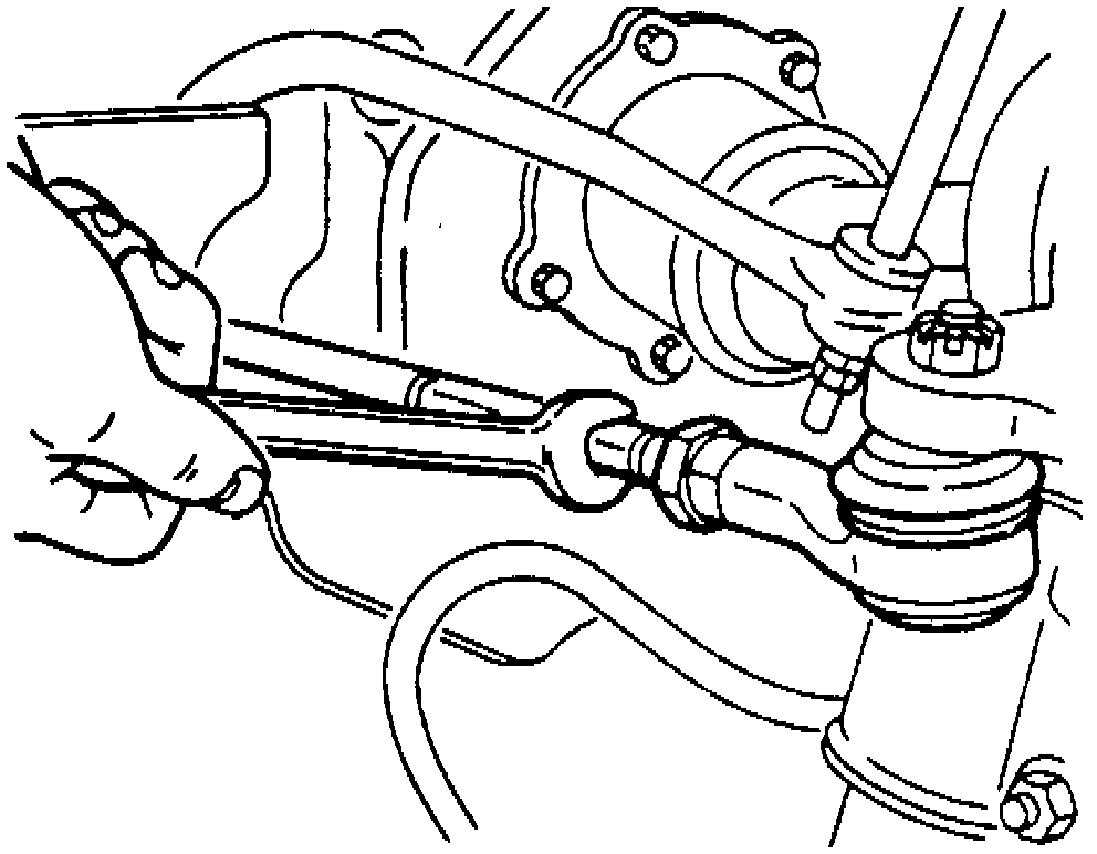 2. Turn tie rods into or out of tie rod ends an equal amount on each side. To increase toe-in, turn right tie rod toward front of vehicle, and turn left tie rod toward rear of vehicle. To decrease toe-in, turn tie rods in opposite direction. One turn of each side tie rod changes toe-in by approximately 0.28 inch.