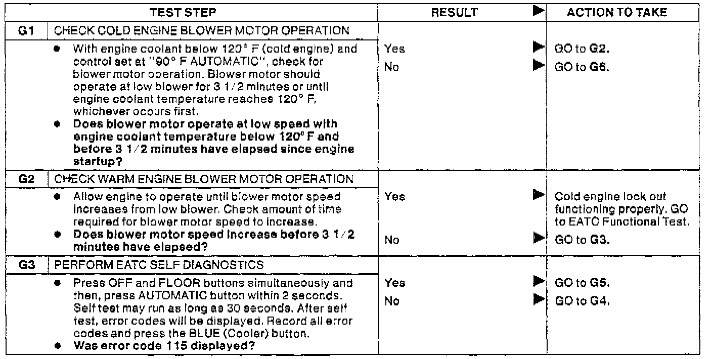 Cold Engine Blower Control - No Codes (Test Steps G1-G3):