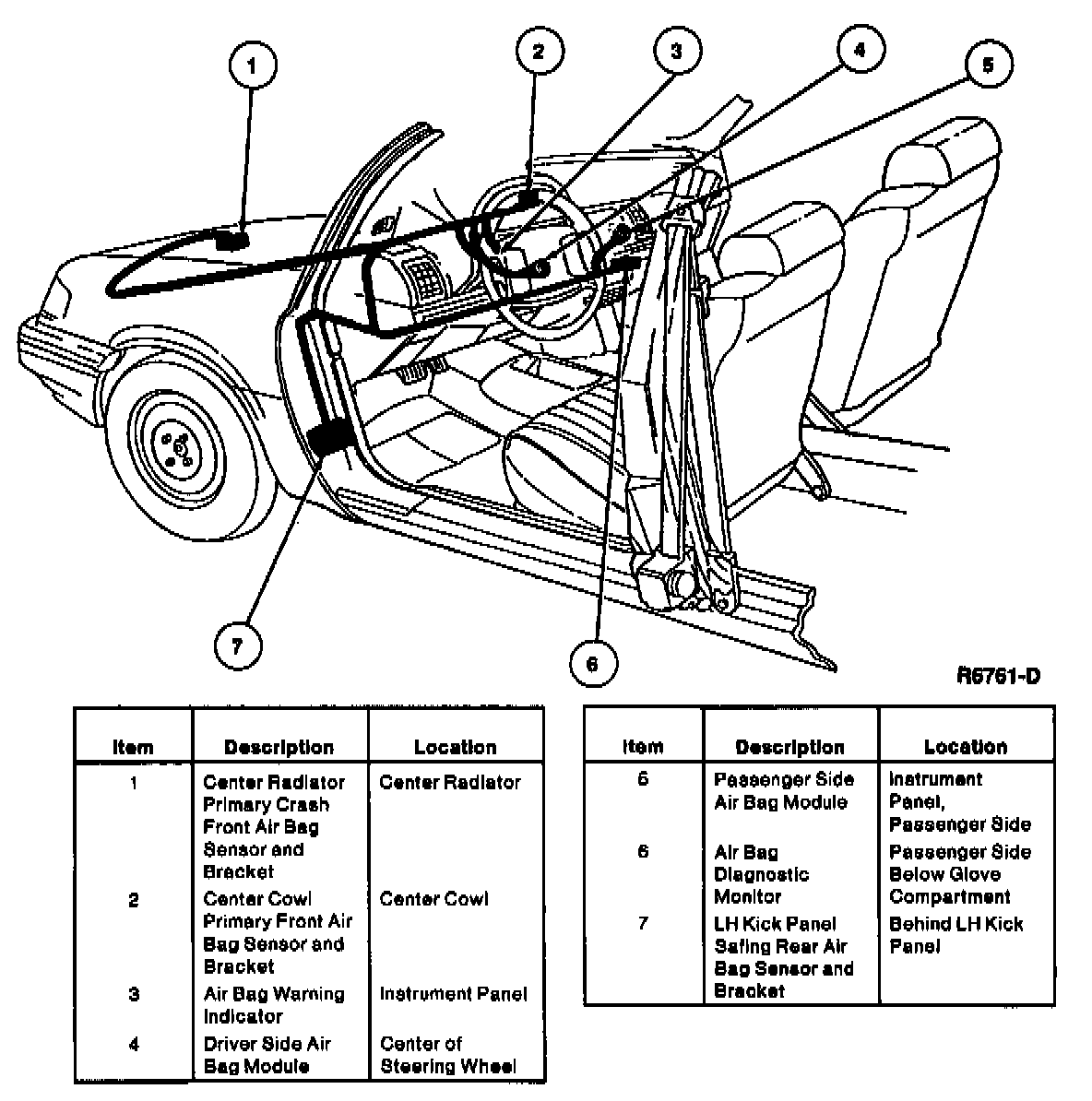 - Center cowl primary crash front air bag sensor and bracket, center radiator primary crash front air bag sensor and bracket, LH kick panel safing rear air bag sensor and bracket.
