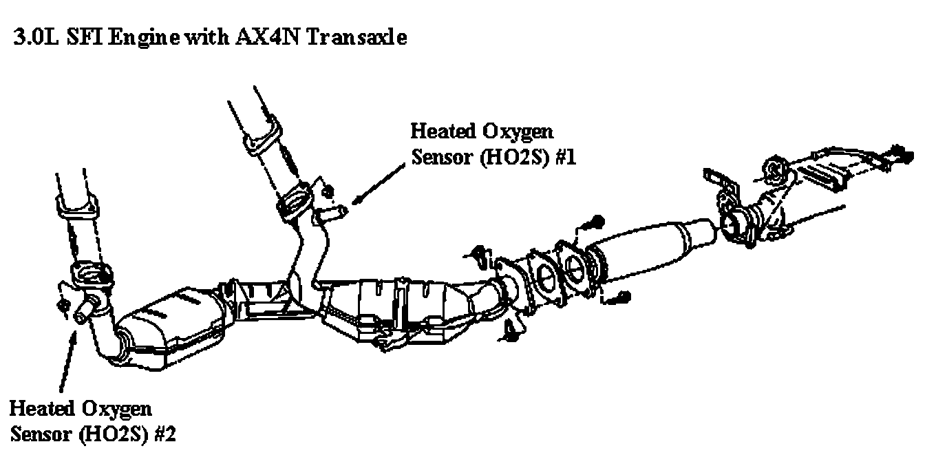 The Heated Oxygen Sensors (HO2S) are located in the dual converter Y pipe.