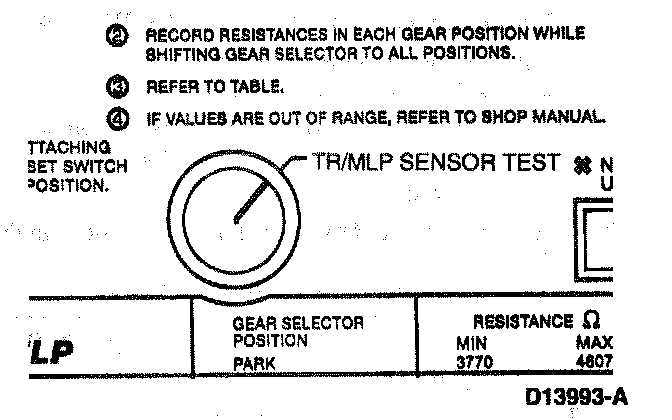 4. Record resistance in every gear position while moving the shift lever to each position.