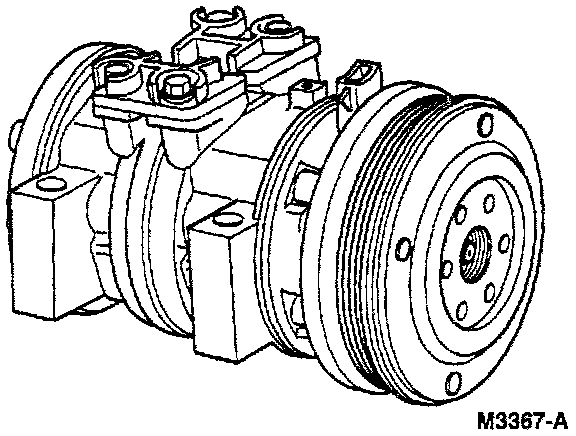 ^ When voltage is removed from the A/C clutch field coil, a rubber bushing in the A/C clutch assembly moves the A/C clutch away from the A/C clutch pulley, and the compressor shaft ceases to rotate.