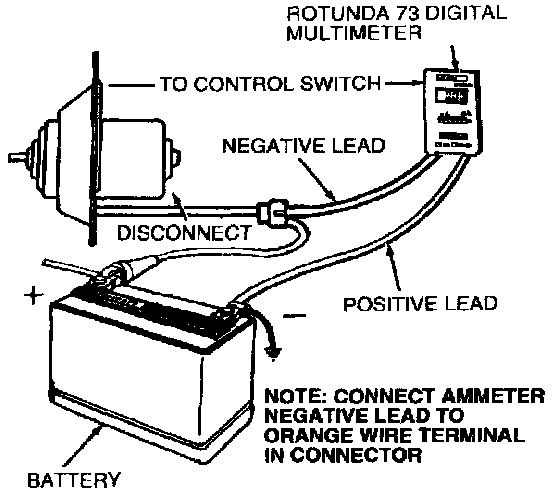 1. Connect a 0.0-30.0 ampere ammeter, ground the negative lead of the A/C blower motor and measure the heater blower motor current draw at the high-speed setting.