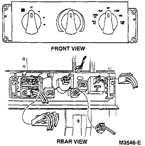 1. Connect the wire connectors and the vacuum harness to the A/C control using new pushnuts.
