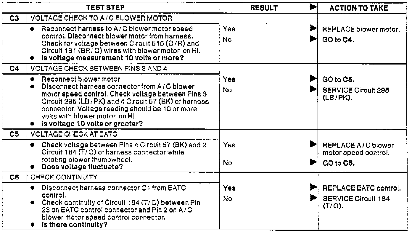 Heater Blower Does Not Run (Test Steps C3-C6):