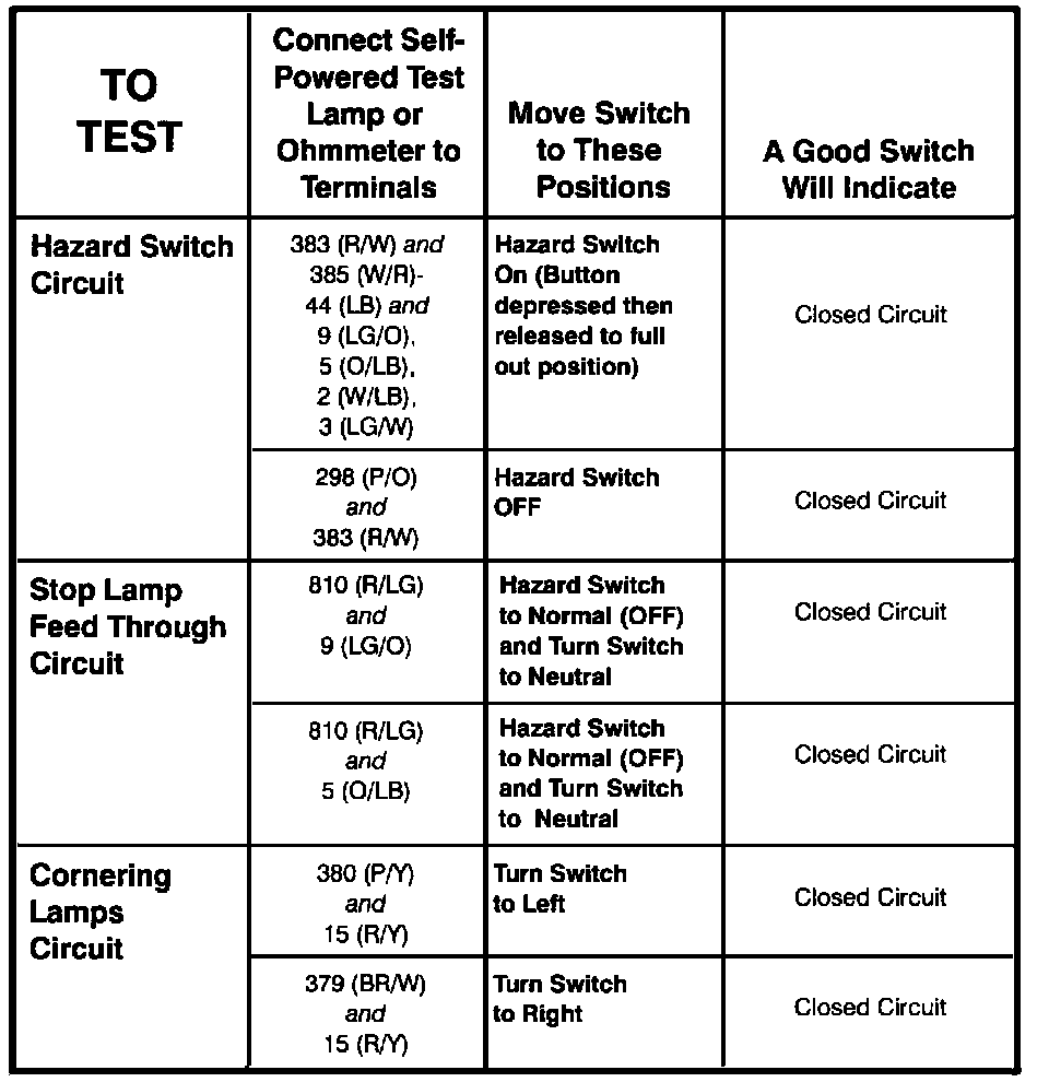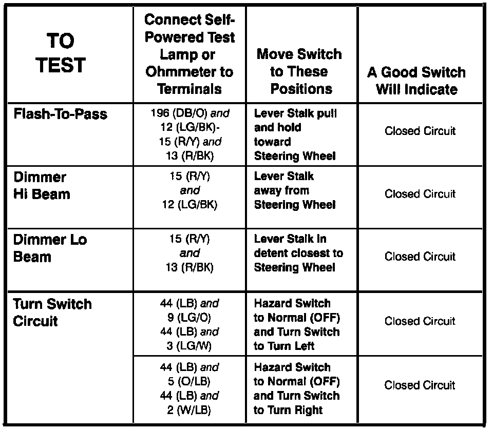 Multi-Function Switch Component Testing Procedures
