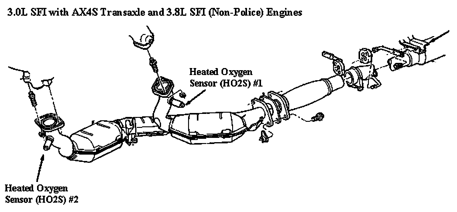 The Heated Oxygen Sensors (HO2S) are located in the dual converter Y pipe.
