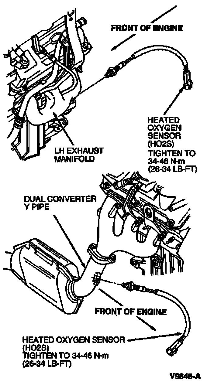 One of the Heated Oxygen Sensors (HO2S) is located in the LH exhaust manifold and the other is located in the dual converter Y pipe.