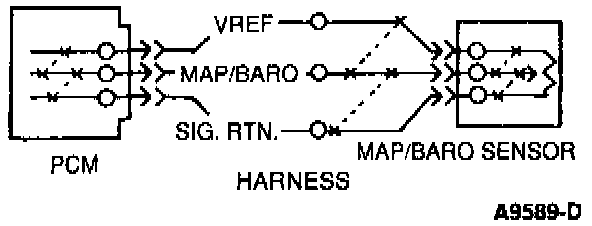 - Referring to the illustration above, grasp the vehicle harness closest to the sensor connector. Wiggle, shake or bend a small section of the Electronic Engine Controls (EEC) system vehicle harness while working toward the dash panel. Also wiggle, shake or bend the EEC vehicle harness from the dash panel to the Powertrain Control Module (PCM).