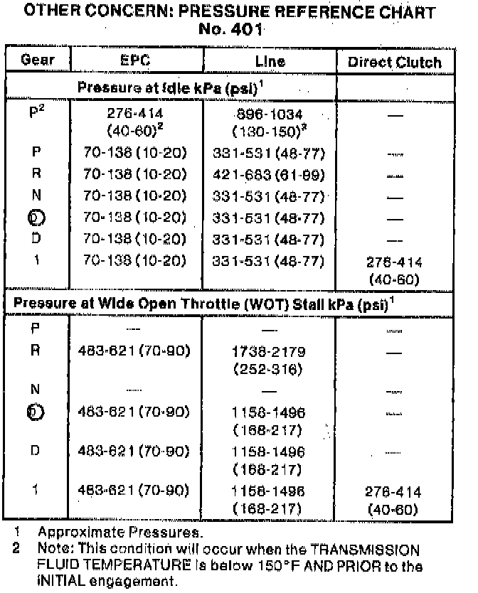 3. Start engine and check line pressure. Refer to Diagnostic Pressure Chart as outlined to determine if line pressure is within specification.