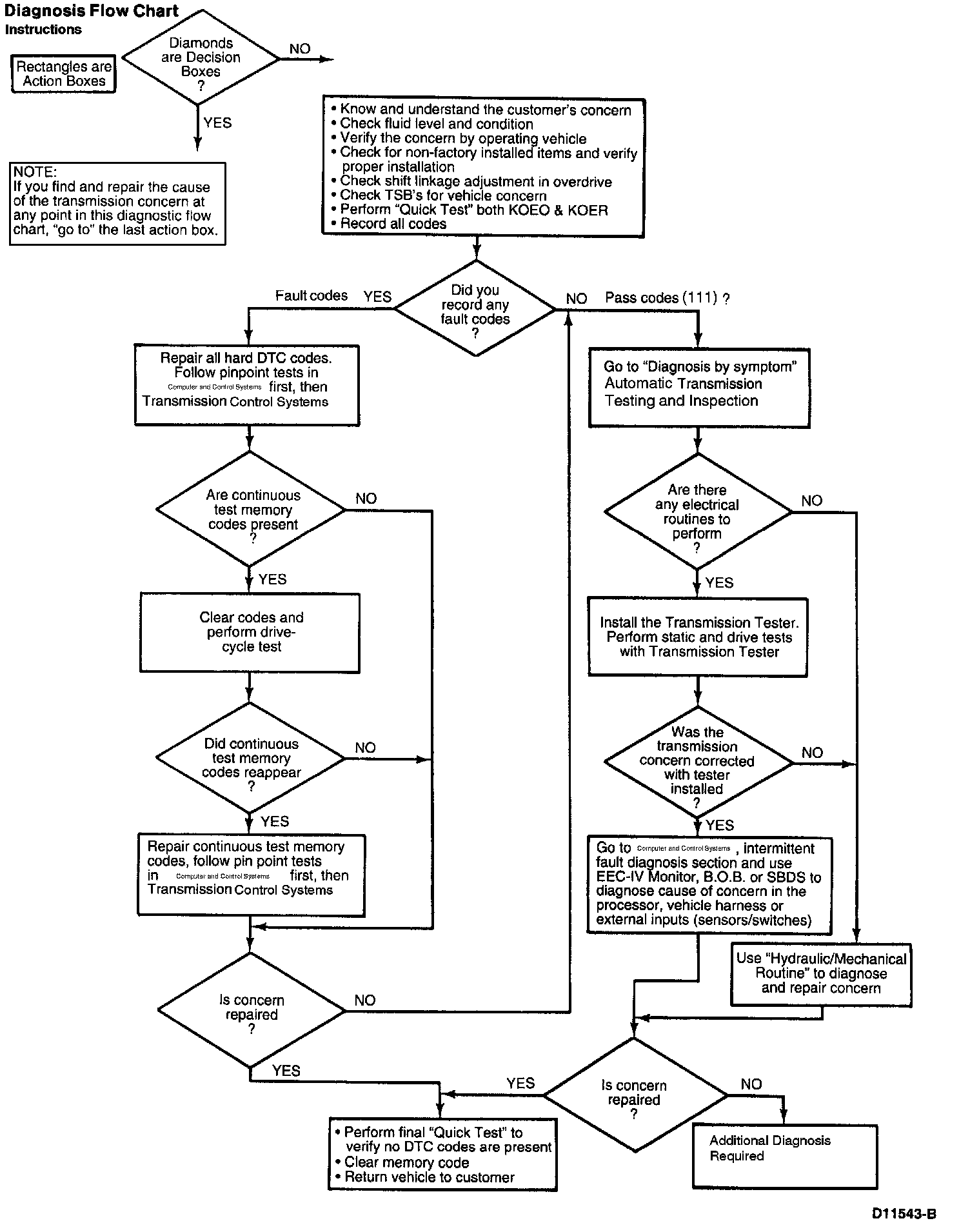 - System pass no fault code set, proceed to DIAGNOSIS by SYMPTOM CHARTS for further information and diagnosis.