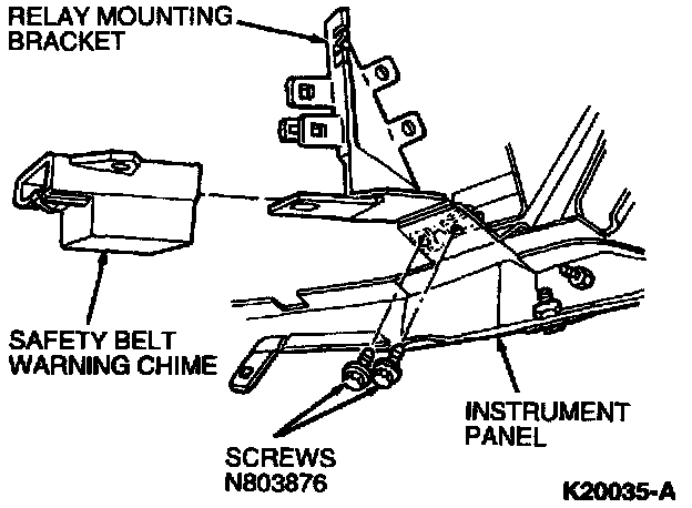 REMOVALNOTE: The safety belt warning chime is mounted on a bracket to the RH side of the steering column, on the instrument panel reinforcement.
