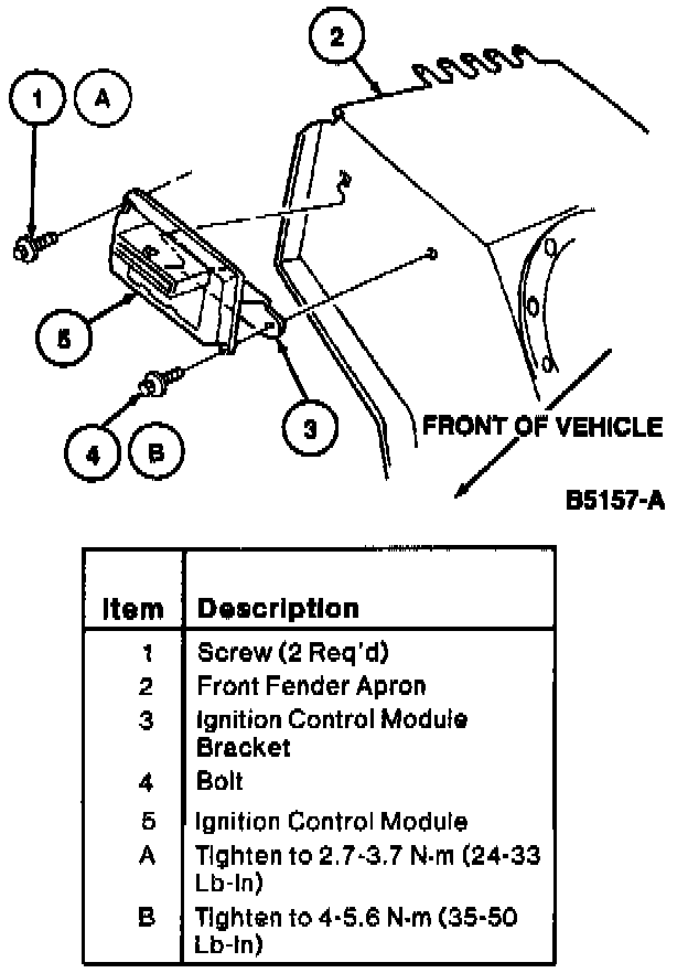 3. Remove ignition control module and ignition control module bracket from front fender apron (if necessary).