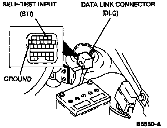 4. Using a jumper, ground the Self-test Input (STI) terminal at the Data Link Connector (DLC).