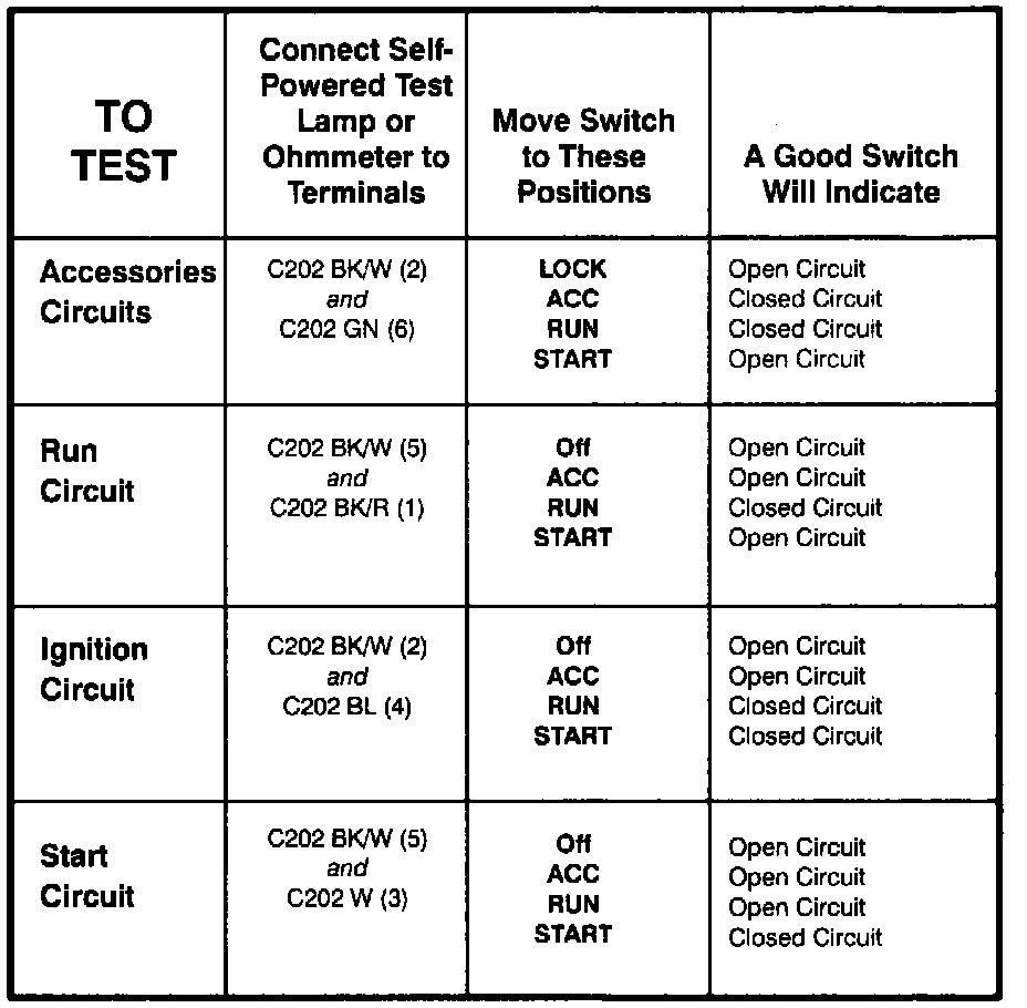 Ignition Switch - Component Testing Procedure: