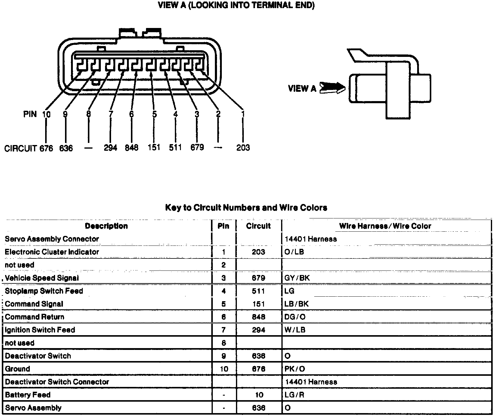 Refer to servo connector terminal identification when performing system diagnosis and testing, and to diagnosis by symptom charts to determine the correct pinpoint test.