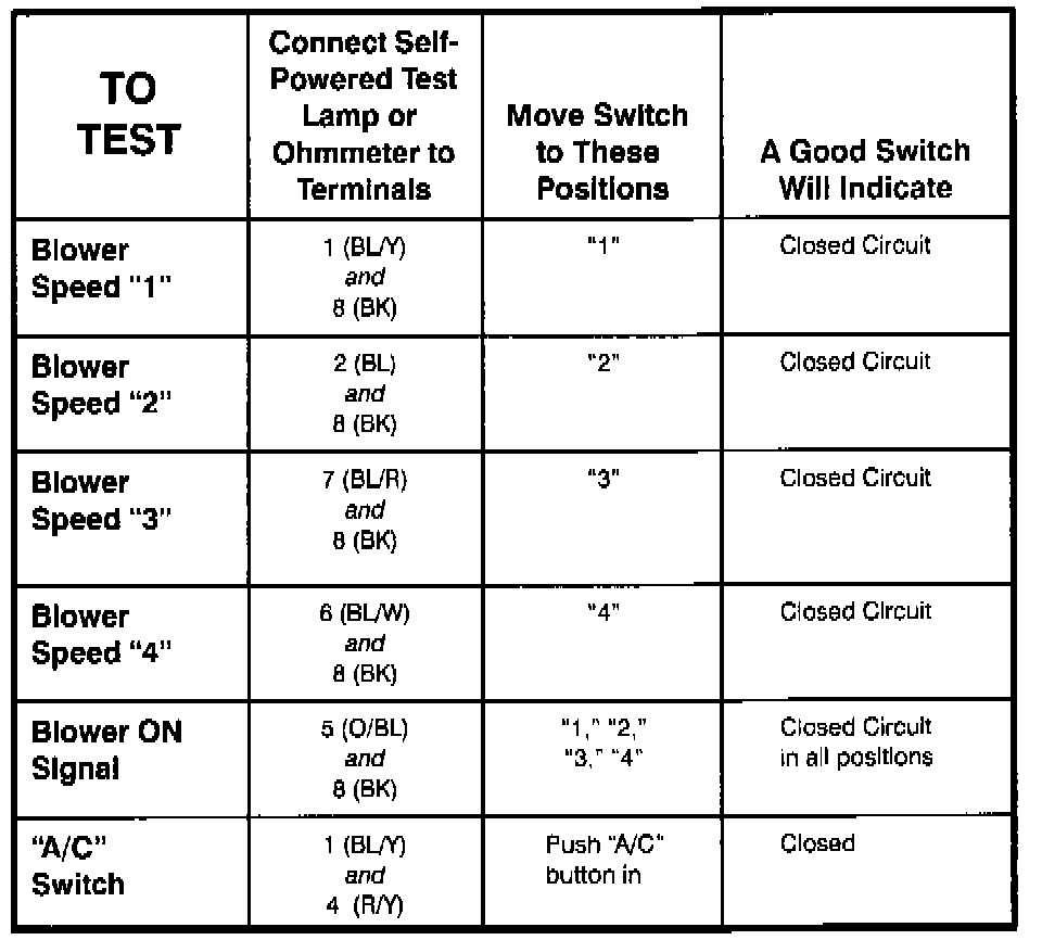 A/C-Heater Control Assembly - Component Testing Procedure: