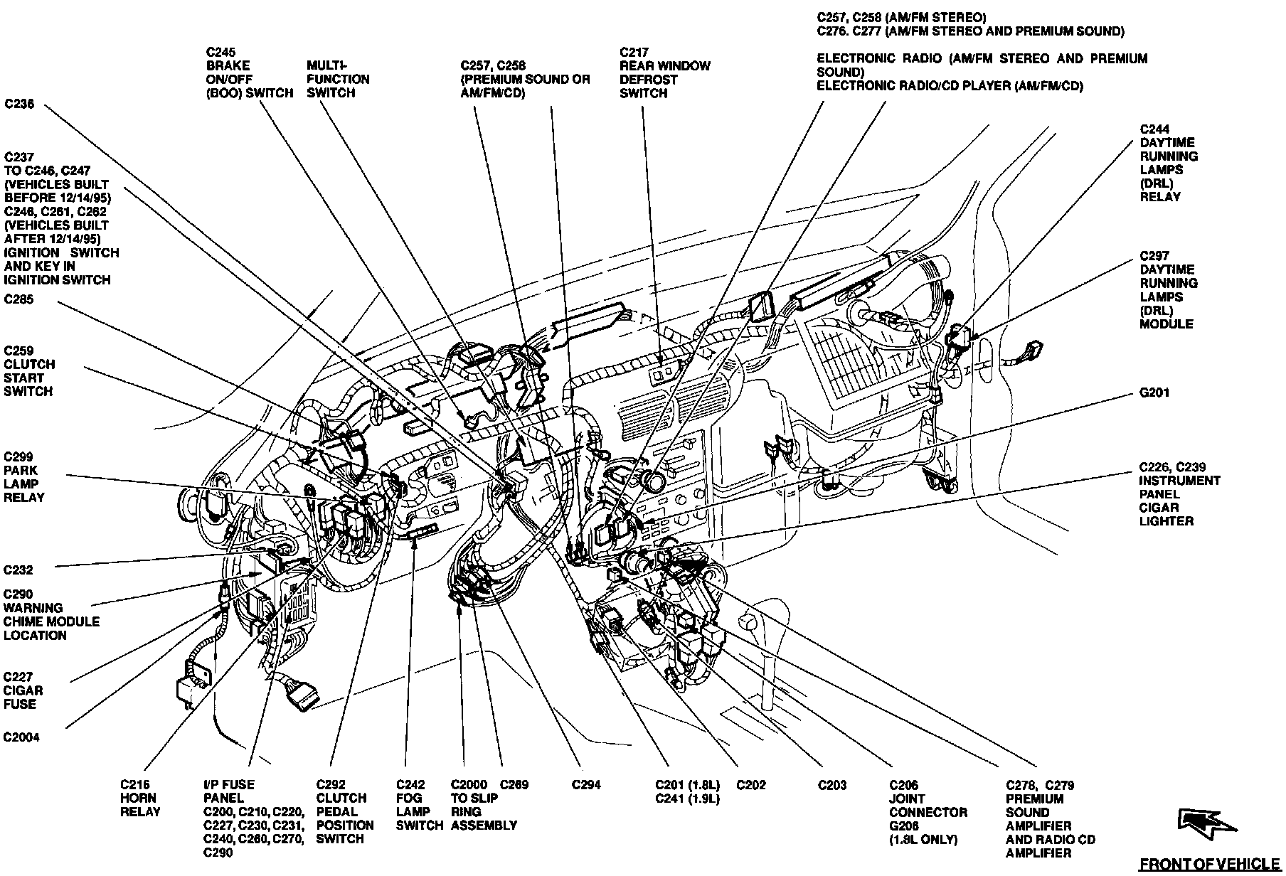 The Daytime Running Lamps Module is located behind the RH side of the instrument panel, top of cowl panel.