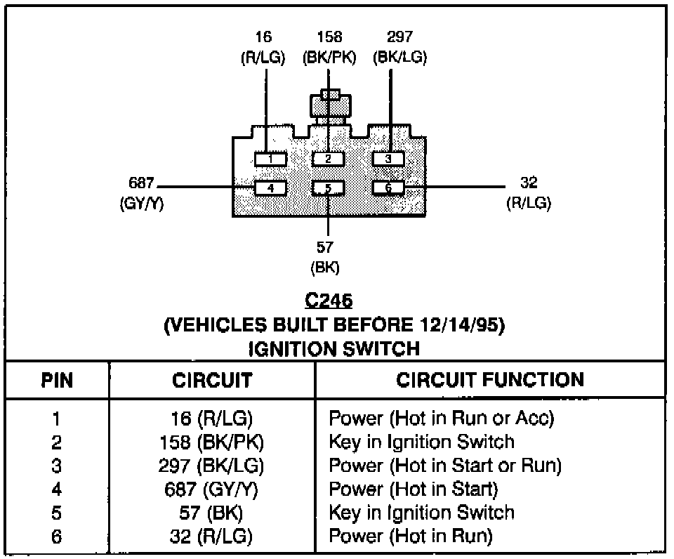 Ignition Switch (Vehicles Built Before 12/14/95):