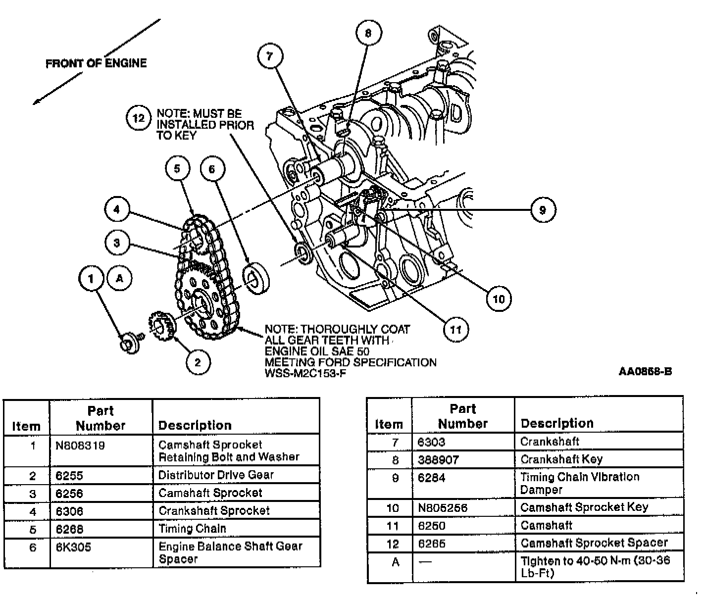 3. Lubricate timing chain with clean engine oil meeting Ford specification WSS-M2C153-F.