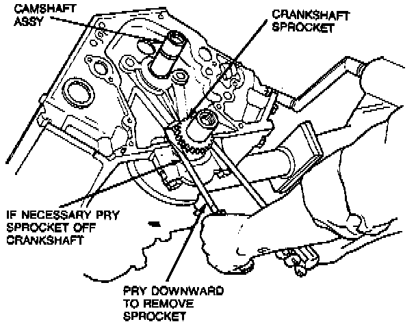 NOTE: If crankshaft sprocket (6306) is difficult to remove, loosen crankshaft sprocket by prying, using a pair of large prybars positioned on both sides of the crankshaft sprocket.