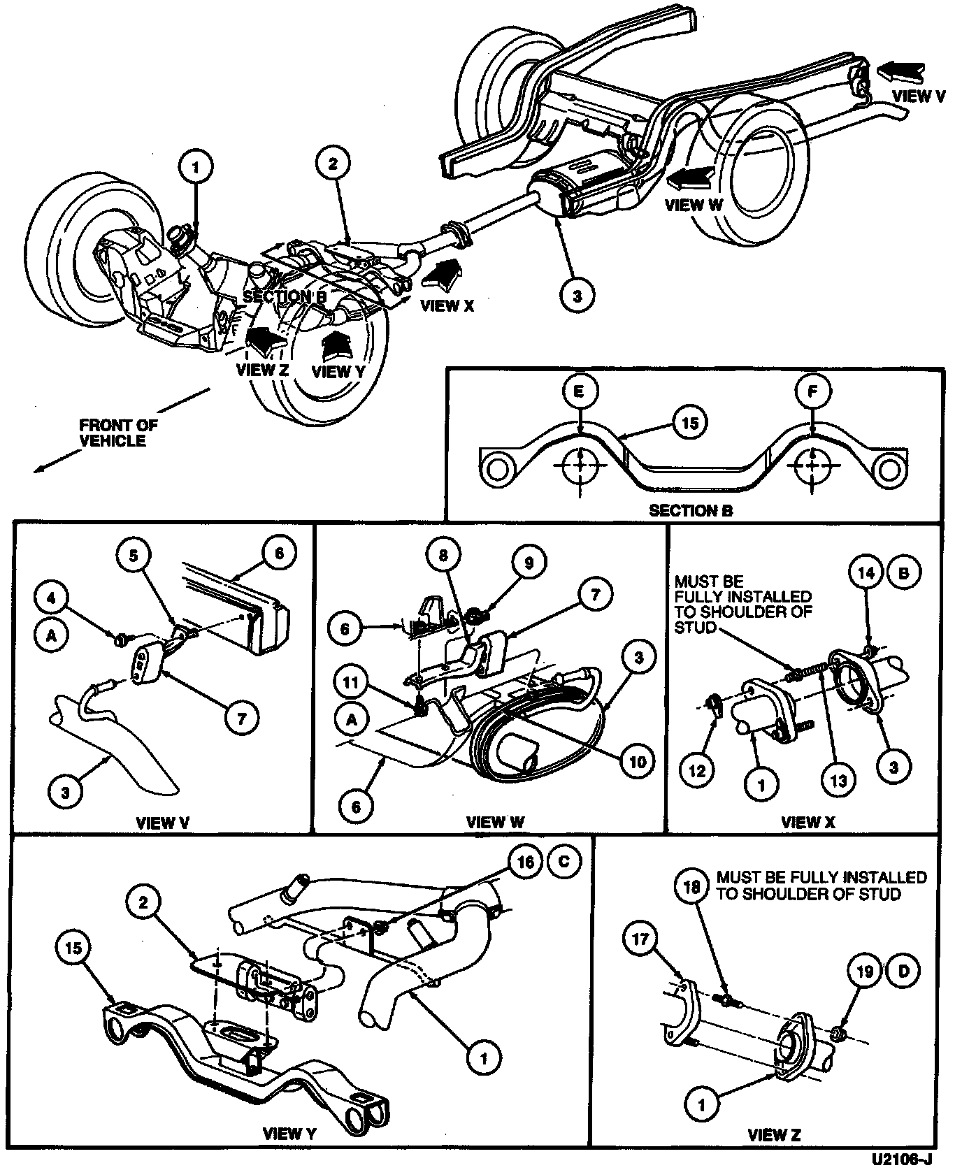 1. Loosely install dual converter and pipe and support with a suitable jackstand.