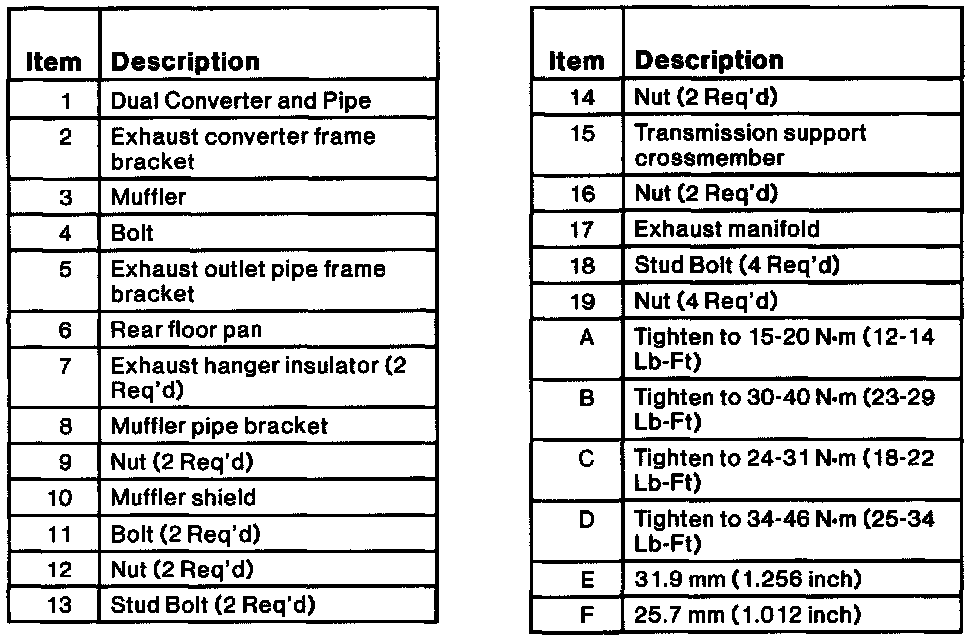 a. Tighten dual converter and pipe to exhaust manifold nuts to 34-46 Nm (25-34 lb.ft).
