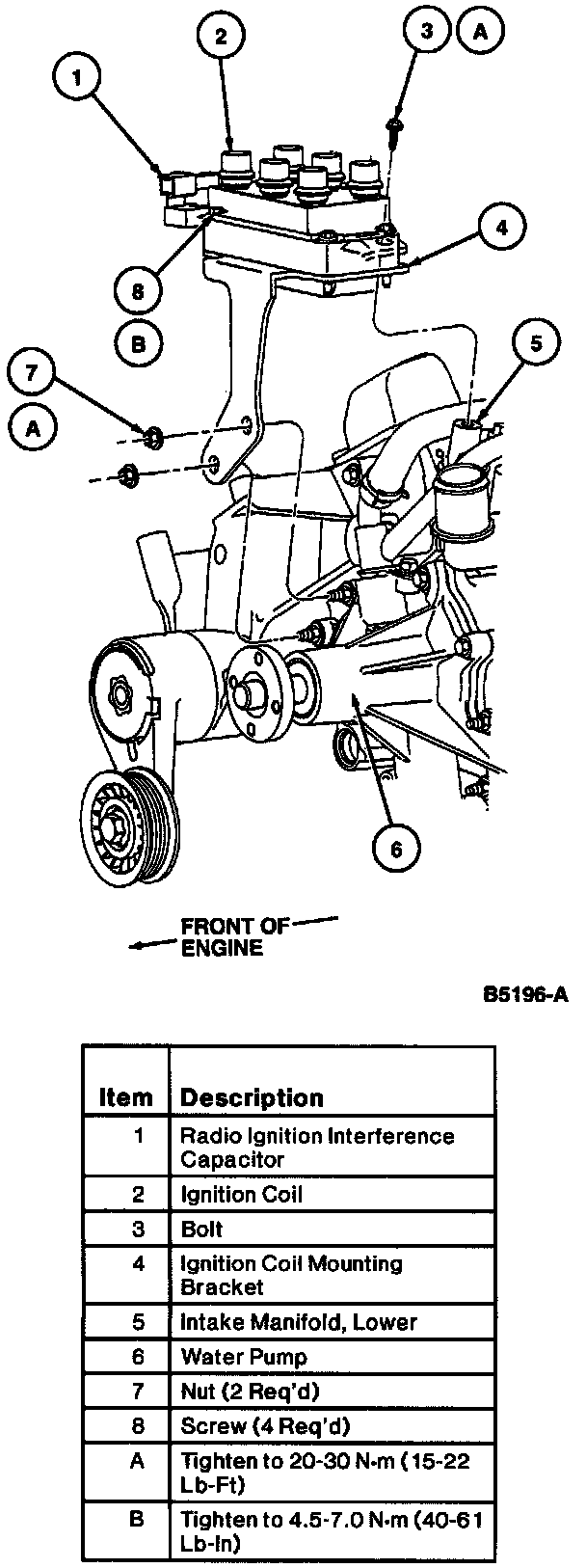 1. Position ignition coil and radio ignition interference capacitor to ignition coil bracket.