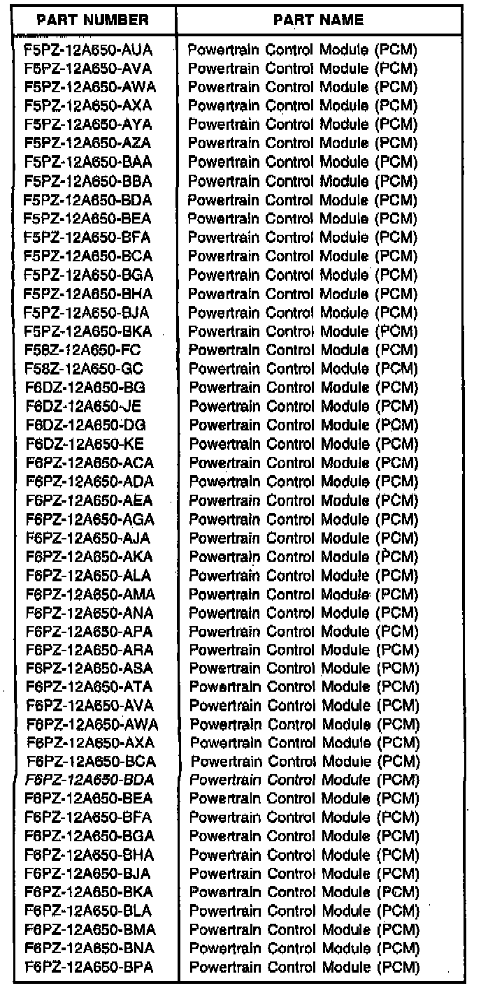 Refer to the Calibration Identification Charts for affected calibrations. The calibrations listed are current calibrations Past calibrations for the listed vehicles are also included.
