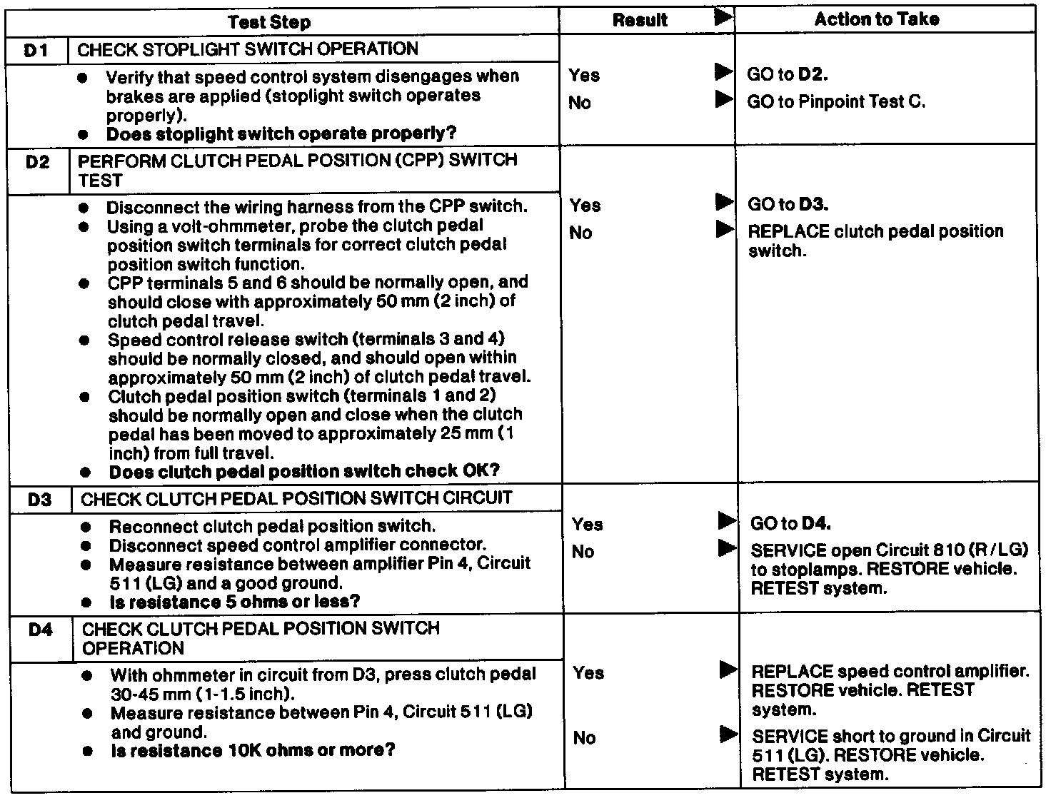 Test D: Speed Control Does Not Disegage When Clutch Is Applied.: