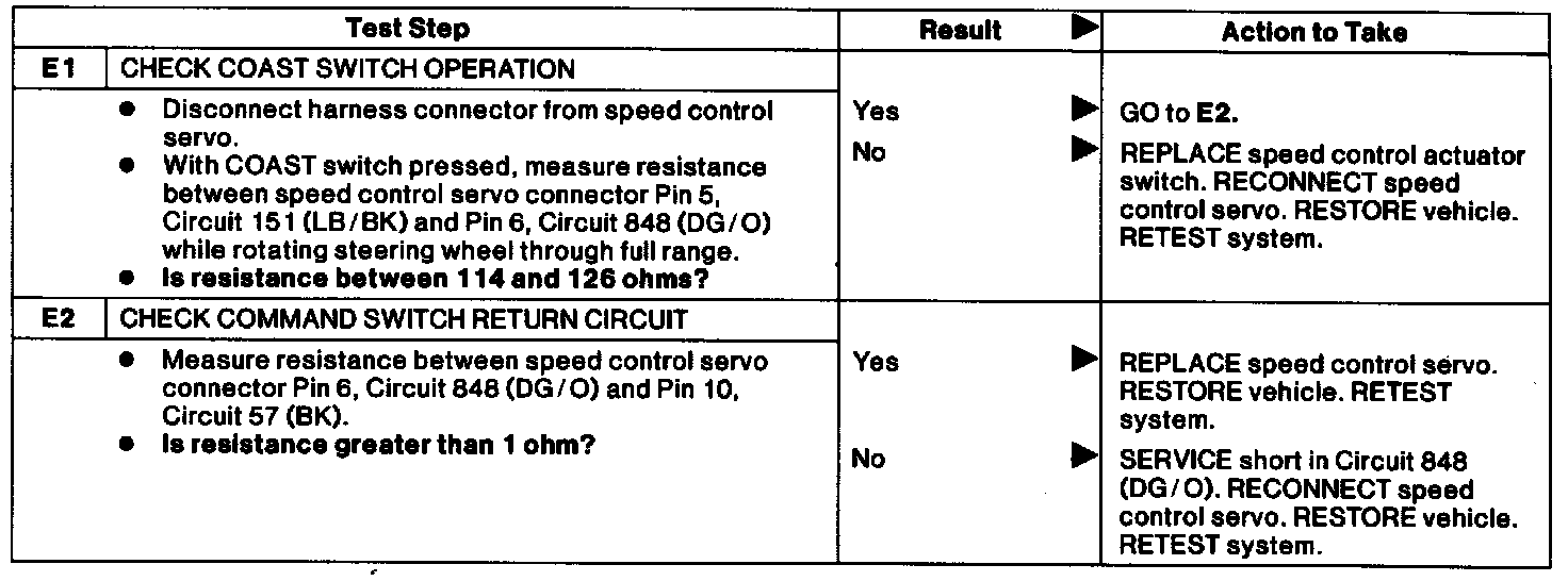 Test E: Coast Switch Inoperative.: