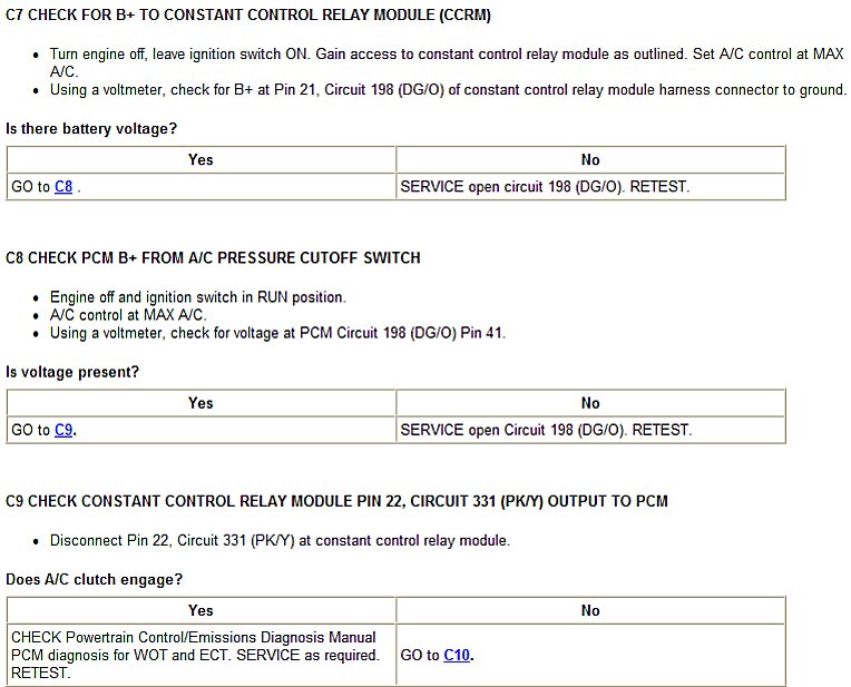 Pinpoint Test C: A/C does Not Operation/Does Not Operate Properly