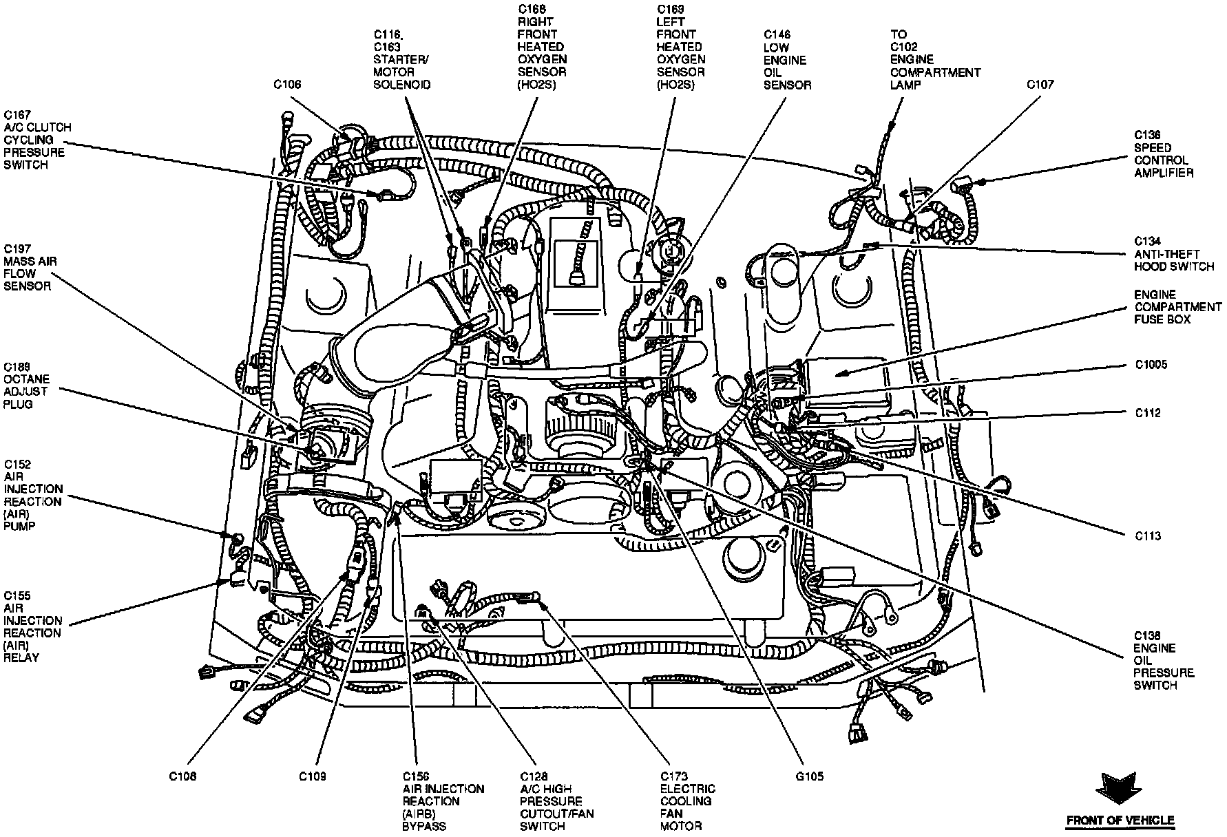 The Mass Air Flow Sensor is located at the RH side of the engine compartment, on rear of air cleaner assembly.