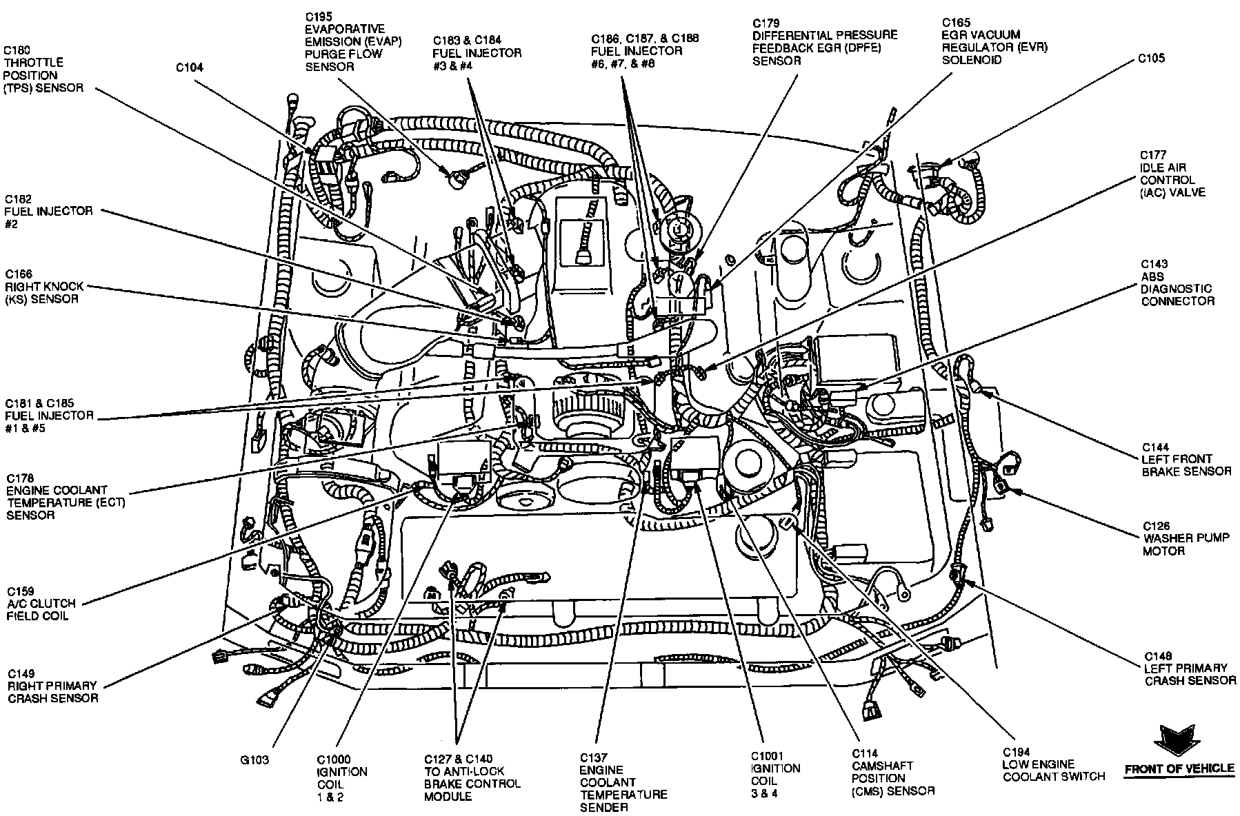 The Throttle Position Sensor is located at the top RH side of the engine, on front of throttle body.