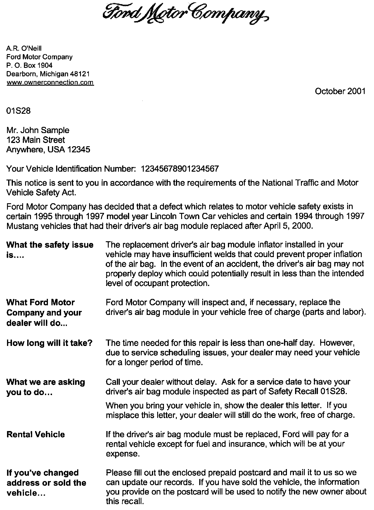Recall - Air Bag Module Inspection/Replacement