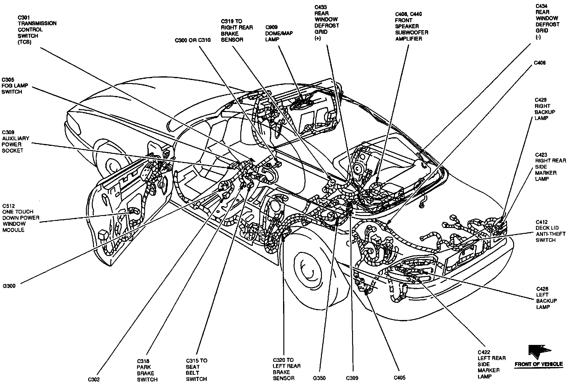 The One Touch Down Power Window Module is located at the lower rear of the LH door.