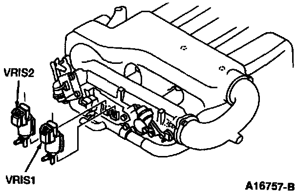 Three solenoid operated shutter valves are installed in the dynamic chamber of the Variable Resonance Induction System (VRIS). The VRIS opens and closes the shutter valves according to the engine speed and throttle opening angle to improve the charging efficiency by utilizing the pressure waves of the intake air.