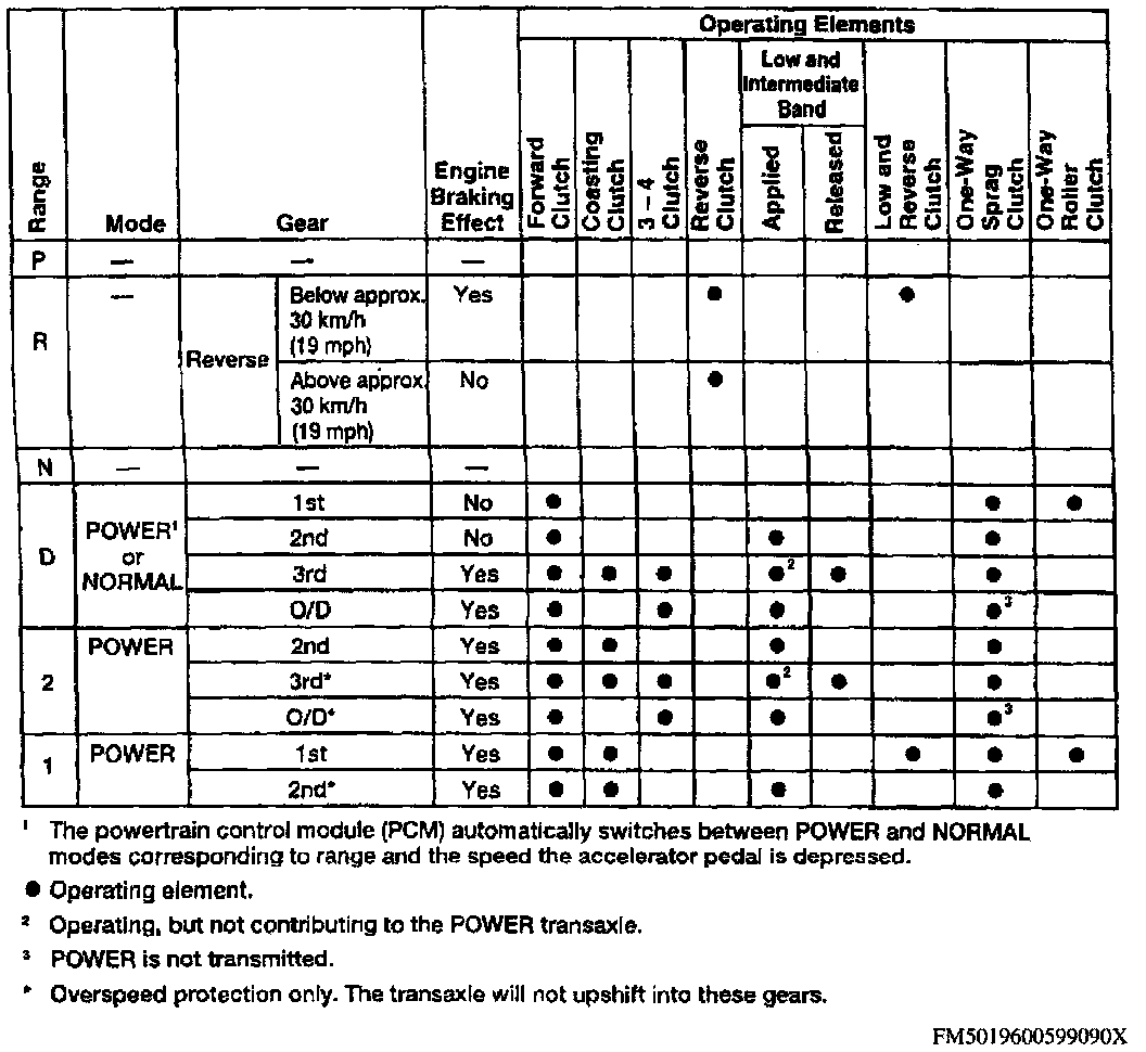 DESCRIPTIONAutomatic Transaxle Operating Characteristics: