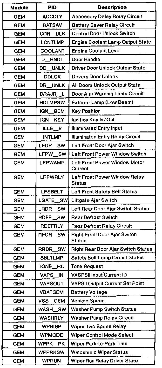 Generic Electronic Module (GEM) Parameter ID Index: